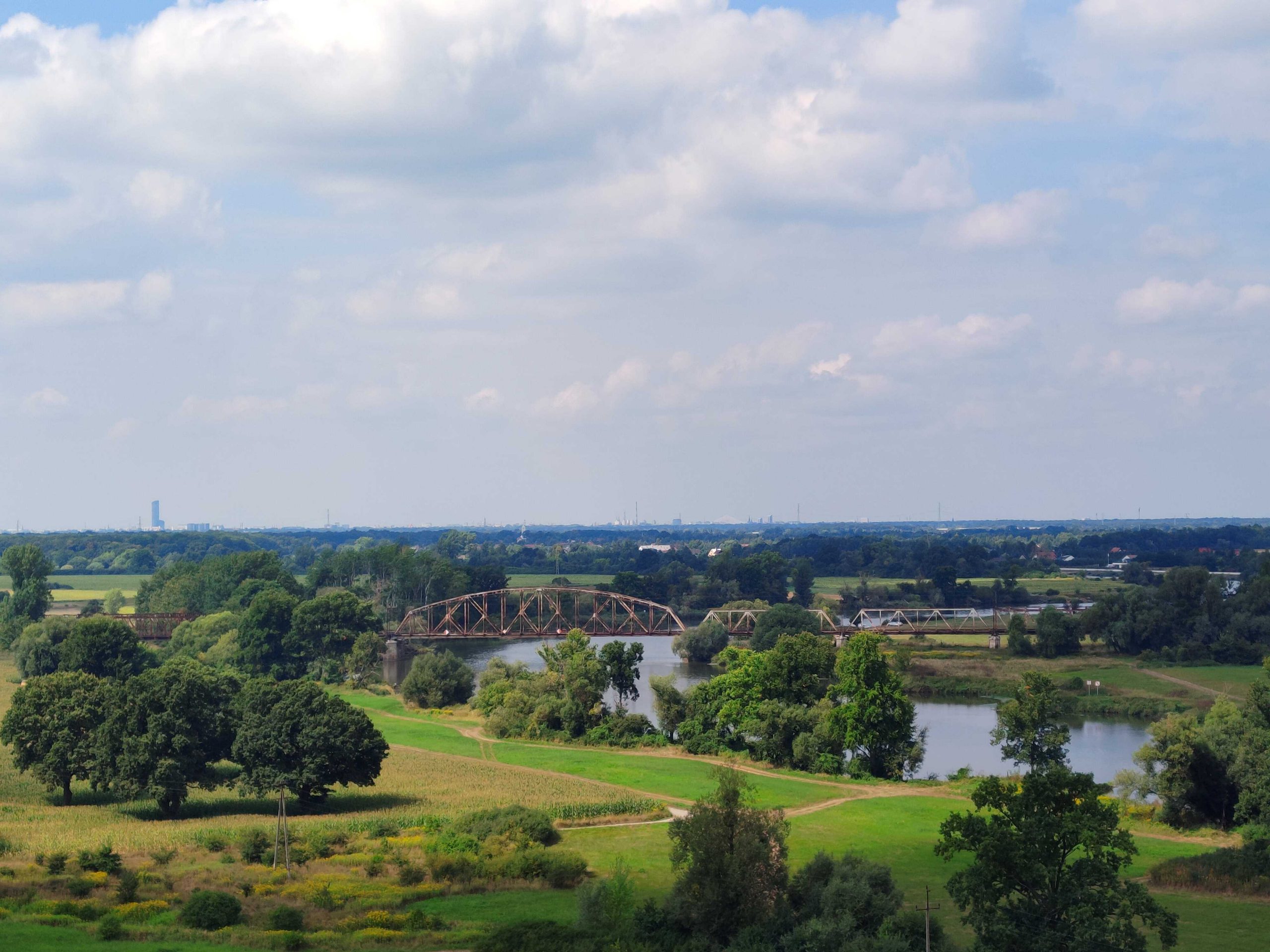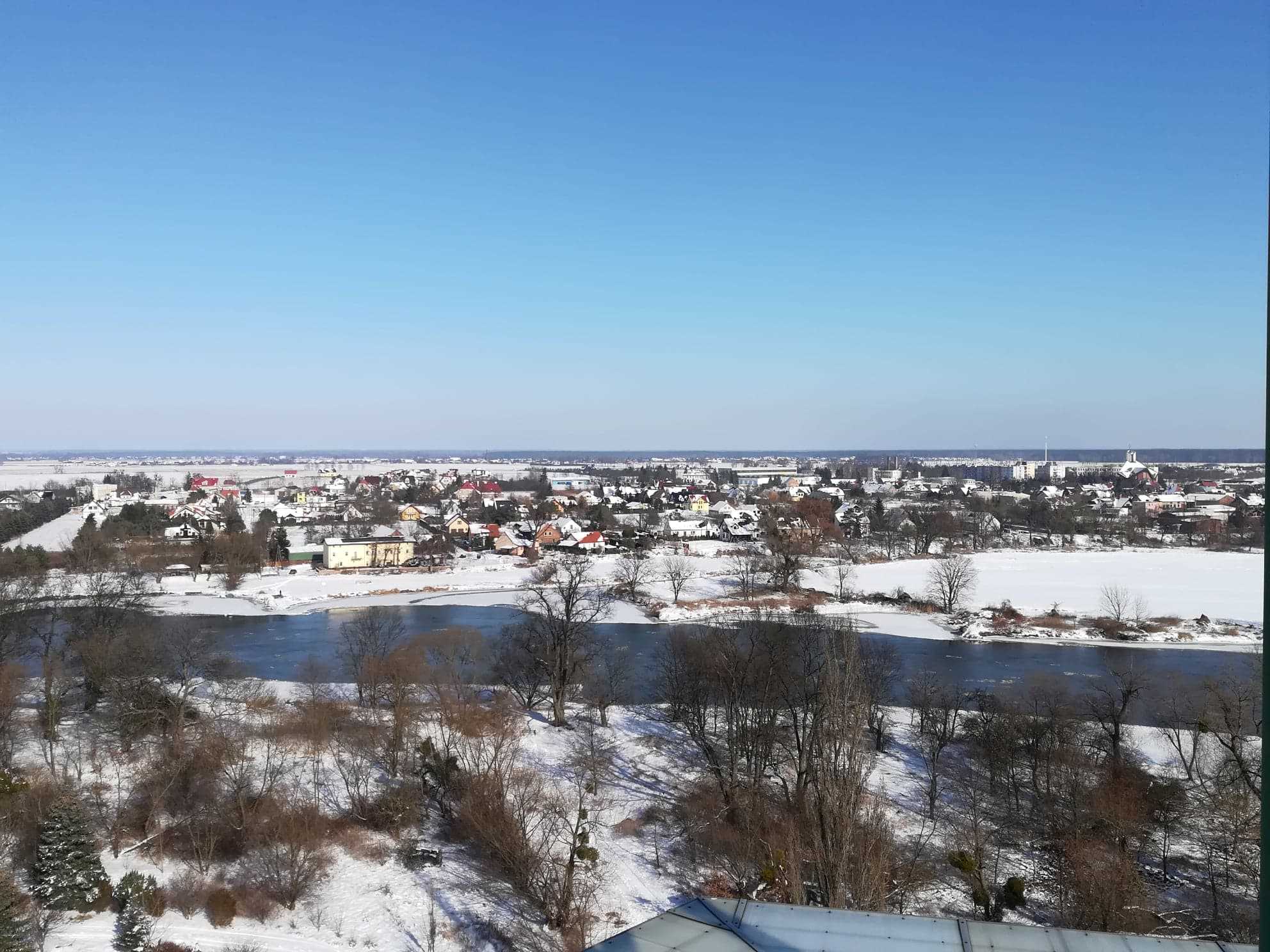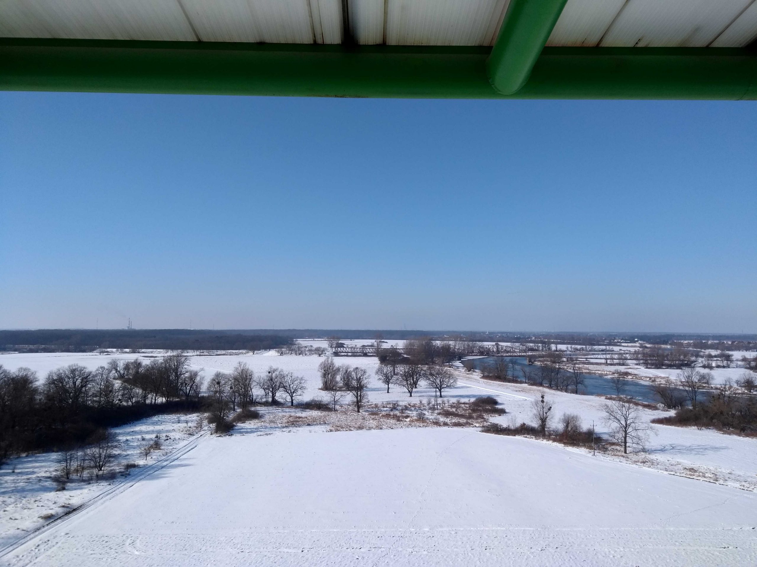widoki:panorama Gminy Siechnice, Wzgórza Niemczańsko-Strzelińskie, tereny aglomeracji wrocławskiej, masyw Ślęży, zarys Sudetów, rzeka Odra