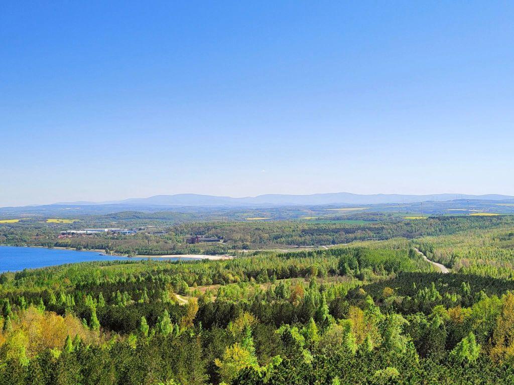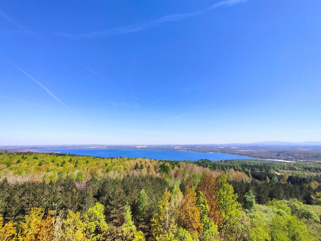 📢Ciekawostka: Berzdorfer See, czyli jezioro, które widać z wieży i przy którym odpłatnie można zostawić samochód, powstało w skutek zalania nieczynnej od roku 1997 kopalni węgla brunatnego Berzdorf. Jego powierzchnia wynosi 965 hektarów, a długość linii brzegowej 15,5 km.