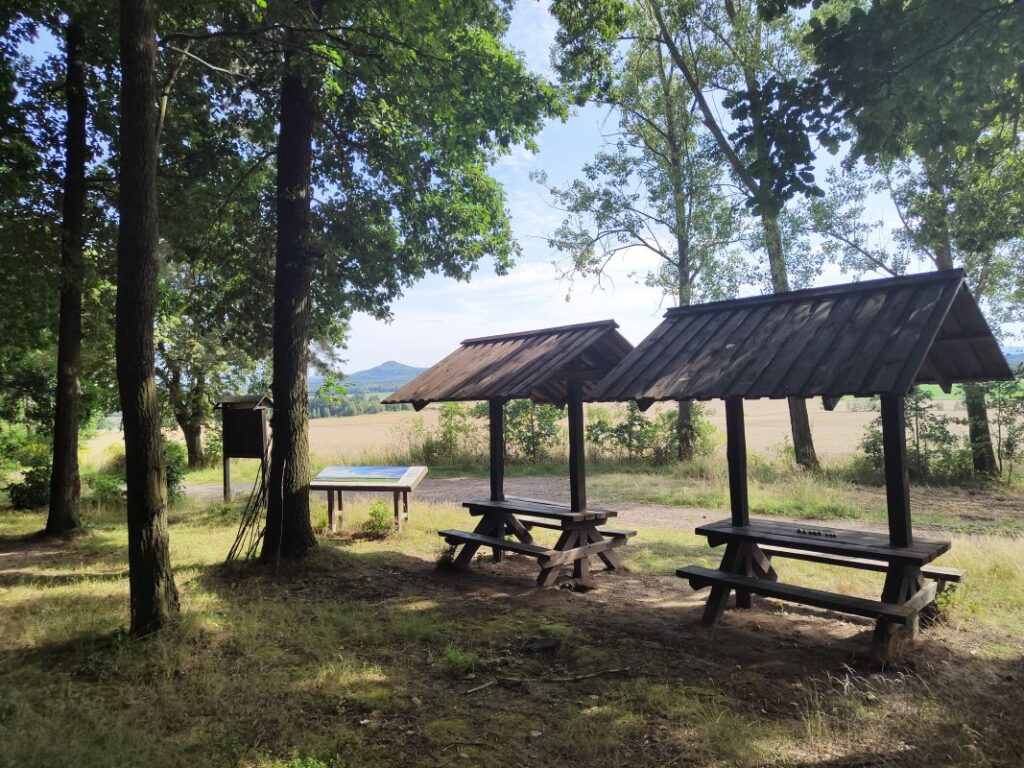 Oprócz dwóch zadaszonych stołów z ławeczkami odnajdziemy tu również dwie tablice (jedna przybliża turystom najważniejsze elementy panoramy, jaką możemy podziwiać, druga zawiera informacje o okolicy, w której przebywamy).