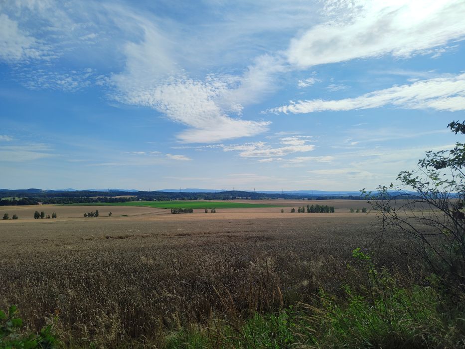 Wśród widoków, jakie możemy obserwować spod wiaty, wymienić należy Ostrzycę, Karkonosze czy Góry Izerskie (po drodze z Twardocic zaobserwować można także Wilczą Górę).