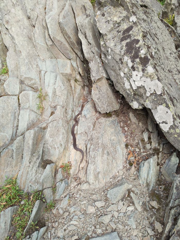 Podczas naszej wizyty, na jednej z nich wygrzewała się żmija – warto więc zachować tu czujność i nieco uważniej patrzeć pod nogi.