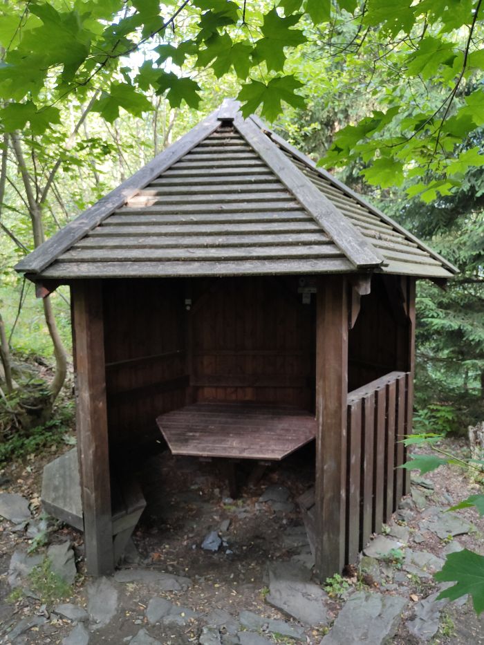 W szczytowej partii Okola oprócz wspomnianego tarasu widokowego (przy dobrej widoczności można obserwować stąd m. in. dolnośląską Łysą Górę, Rudawy Janowickie czy Karkonosze), natknęliśmy się jeszcze na wiatę turystyczną, w której w razie potrzeby można prowizorycznie przenocować oraz ciekawe skałki.