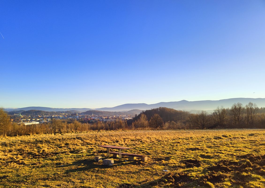 Co prawda nie odnajdziemy tam specjalnej platformy widokowej, ale mimo to jeleniogórski Złoty Widok (ulokowany w północnej części miasta) pozwala nacieszyć oczy pocztówkowym wręcz krajobrazem „miejskiej dżungli” z majestatycznymi Karkonoszami w tle.
