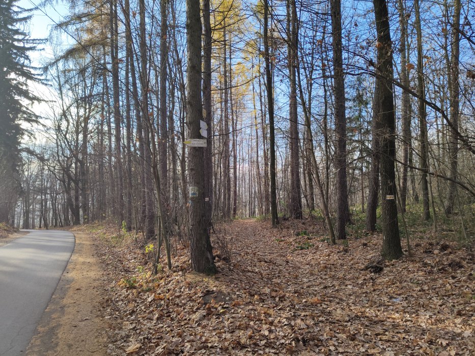 Zaraz po skręcie ponownie znajdujemy się w towarzystwie drzew. Do wieży na Parkowej Górze został nam już niecały kilometr.