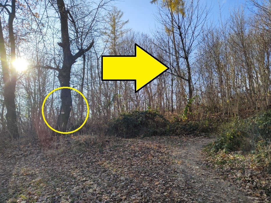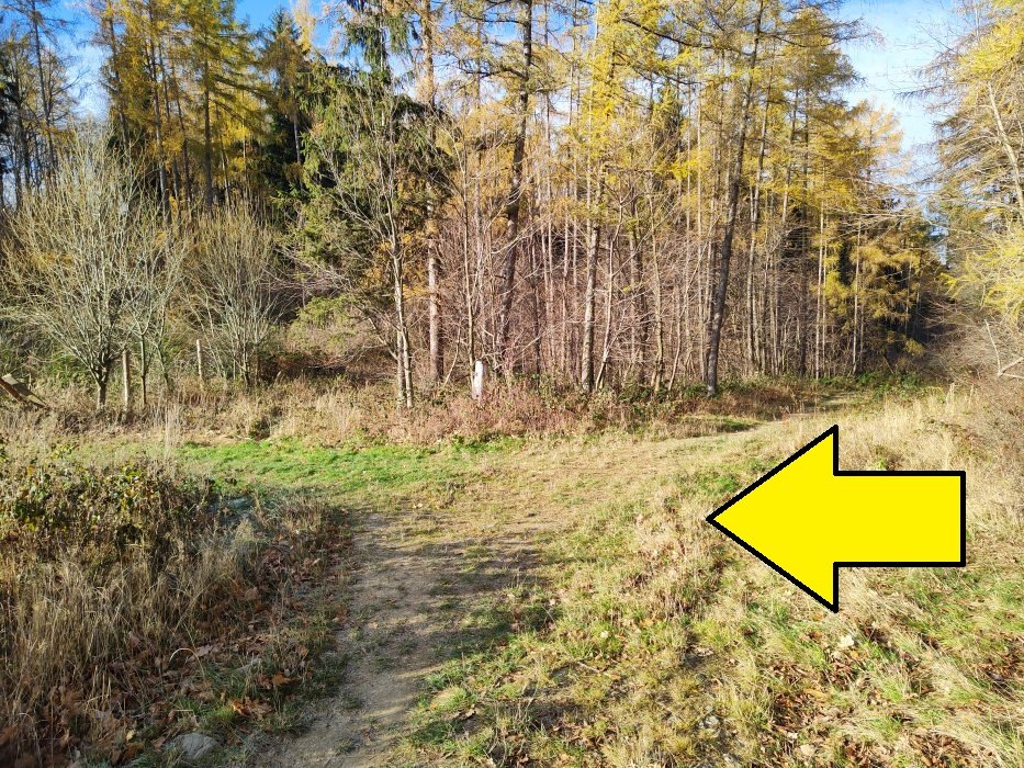 Po zaledwie 60 metrach znów musimy zmienić kierunek marszu – tym razem odbijamy w prawo. Dla ułatwienia na tej krzyżówce przynajmniej umieszczono strzałki.