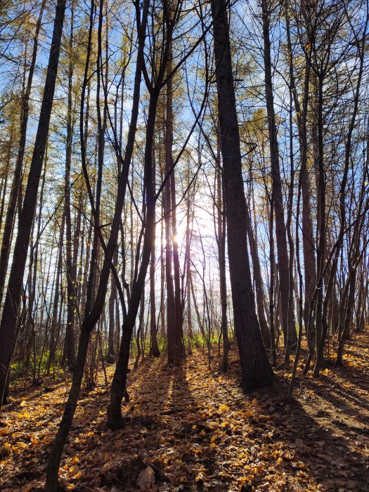 Zagęszczenie drzew nie jest przesadnie wielkie, dlatego marsz przypomina na tym fragmencie trochę spacer po miejskim parku.