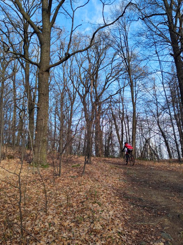 Jak widać, tereny prowadzące na Parkową Górę eksplorowane są nie tylko na nogach. Rowerzyści chętnie wykorzystują tutejsze ścieżki do mierzenia się z podjazdami i zjazdami.