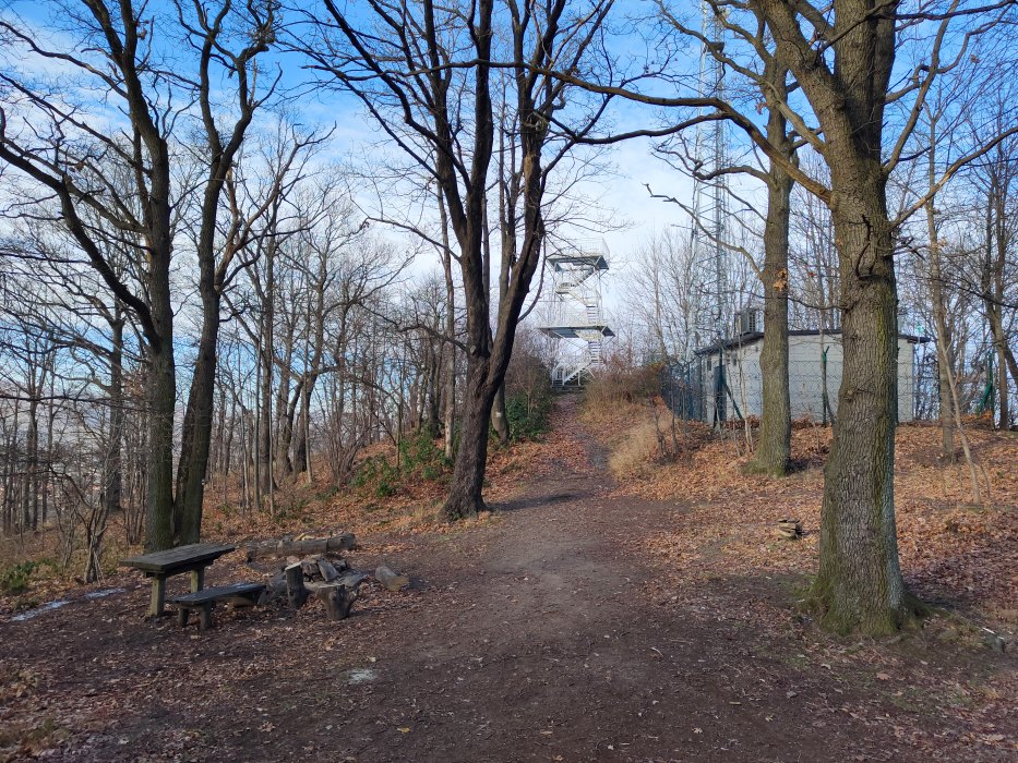 W partii szczytowej Góry Parkowej witają nas ławeczki i prosta droga do 9-metrowej metalowej wieży widokowej.