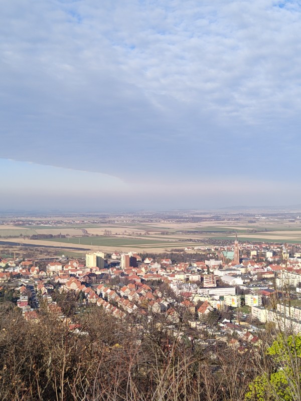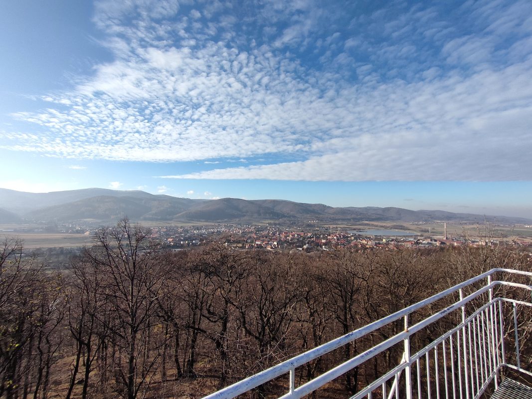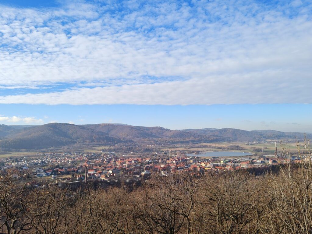 Po wdrapaniu się po ażurowych schodach na taras widokowy konstrukcji naszym oczom ukazują się zabudowania Bielawy oraz miejscowy zbiornik wodny. Dumnie na horyzoncie prezentują się również Dzierżoniów, Góry Sowie oraz Masyw Ślęży.