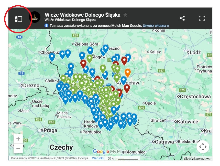 MAPA – wieże i punkty widokowe Dolny Śląsk + pogranicze polsko-czeskie